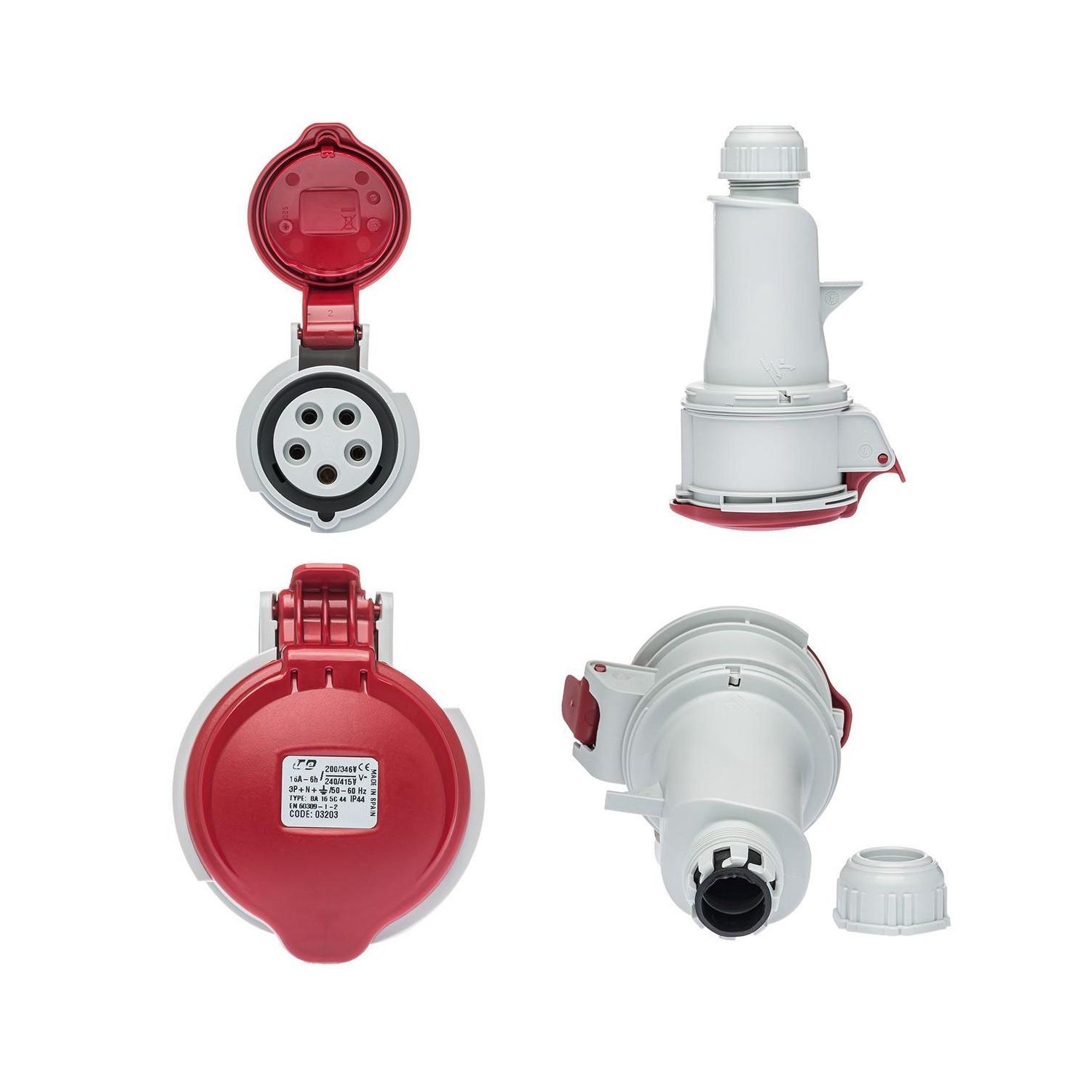 Cette fiche femelle 16A fonctionne en tétrapolaire (3P+N+T) sur une tension de 380V.